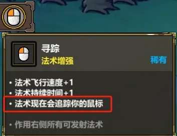 寻踪:落雷是一个只能在自己法杖处释放的固定技能,而黑洞则是一个从法杖处产生,然后飞往瞄准处的法术。两者都不能操控,而寻踪有一特点为法术会跟随鼠标前进。当拥有寻踪后,无论是落雷还是黑洞,都可以跟随鼠标进行移动。