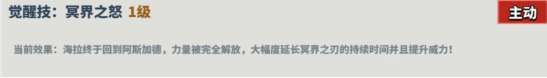 描述:海拉终于回到阿斯加德,力量被完全解放,大幅度延长冥界之刃的持续时间并且提升威力!