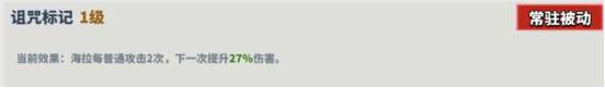 描述:海拉每普通攻击2次,下一次提升27%伤害。