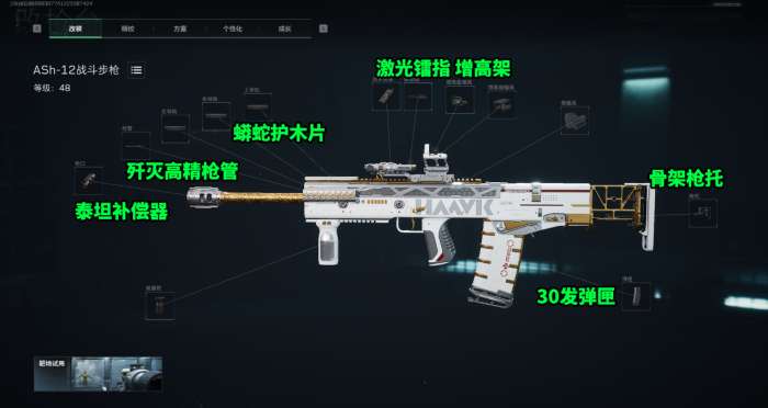 其实对于Ash-12这把枪来说,常规的配枪思路能够选择的套路并不多。究其原因,一方面是因为Ash-12这把枪的基础属性短板太多。另一方面则是因为Ash-12本身的配件池相对匮乏。