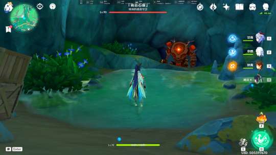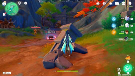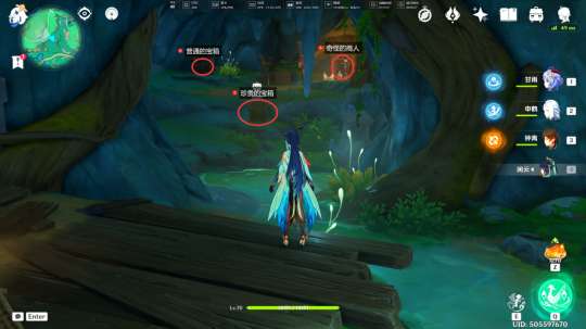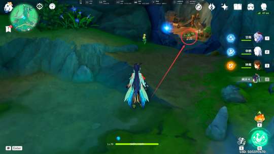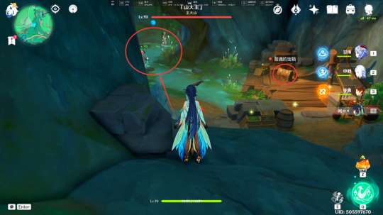 在没有拾取「遗迹机关的核心」前,我们在此处可以遇到被丘丘人包围的奇怪的商人,击败丘丘人后,我们与其对话,即可跟随着他前往山大王的洞口正门(不过我们会被在洞口看守的盘枝蛇和坐地虎拦住,被拦住之后,我们得想办法进入里面,之后的流程就是帖子开头的流程了)