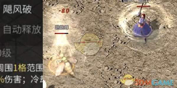 飓风破:道士比较稀缺的群体爆发技能,汇聚狂风之力对目标区域造成较高的伤害。