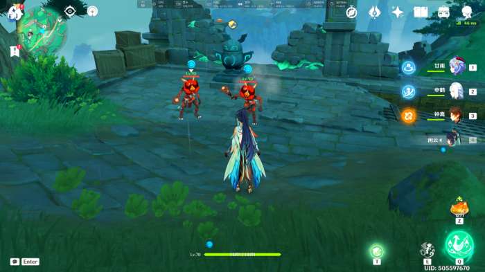 将此处的「古代遗迹」恢复后,会出现三波丘丘人,我们将其全部解决掉