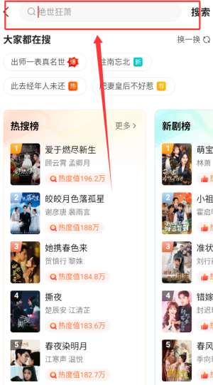1、在繁华剧场搜索电视剧,首先打开APP或官网,在首页顶部的搜索栏输入剧名或演员名。