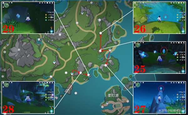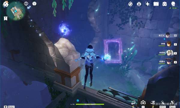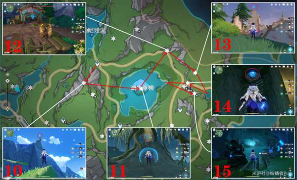 (9)调查水面快速游动的涟漪,就会出现仙灵,降低水位,再用芒元素攻击储物盒即可