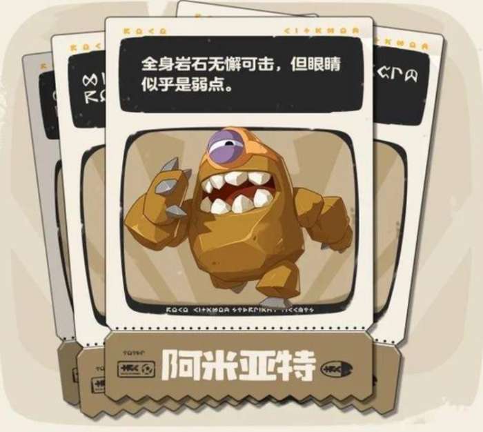 阿米亚特外形以厚重岩甲覆盖全身,整体呈粗犷的岩石构造体,仅眼部裸露在外——这一特征不仅构成其视觉辨识点,也是战斗中可被针对性打击的战术弱点。