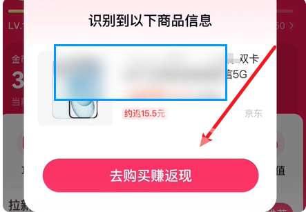 4、之后回到推荐官页面,就会自动弹出商品信息,点击下方的购买按钮就能获得返现。