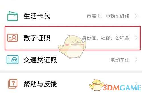 2、进去数字证照之后,然后点击身份电子信息的去认证