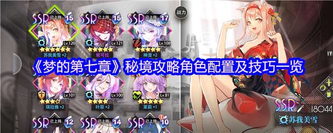 软件提交 专题合集 热门手游秘境是一个可以稳定获取SSR碎片和失落之境、灵知碎片的玩法,这个玩法在开局要选择主角,一般推荐选择法主、没有法主则推荐盾主,因为这两个主角都有保命技能可以更容易保命通关。本次给大家带来了《梦的第七章》秘境攻略角色配置及技巧一览,一起来看看吧!