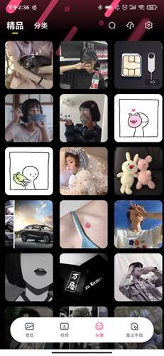 3、再就是【头像】了,这里我们可以找到很多类型的投降,无论是比较茶艺的头像还是二次元动漫人物头像,这里都能够找到。