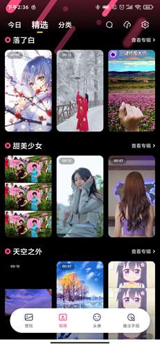 2、然后是【视频】一栏,这里主要提供比较多的动态视频壁纸,并且也是有声音的,适合那些喜欢更多视觉刺激的用户们。