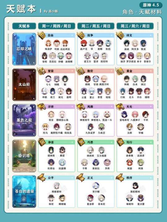 软件提交 专题合集 热门手游原神4.5 角色突破/天赋材料一览表。
