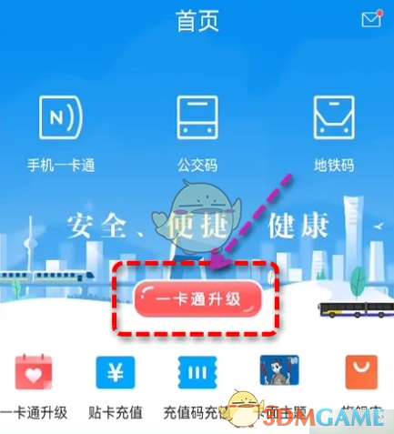1、打开手机,登录【北京一卡通】APP,进入首页,点击【一卡通升级】。