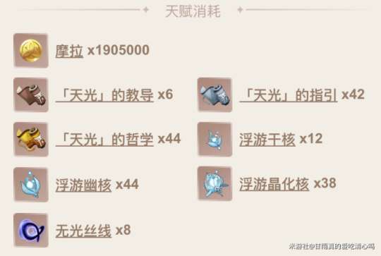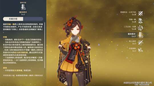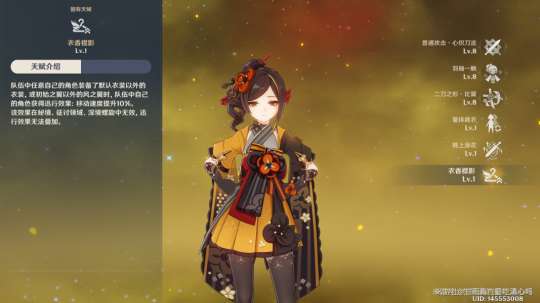 天赋,队伍中有人装备默认衣装和初始风之翼以外的装饰时,获得10%的移速加成,仅大世界生效。