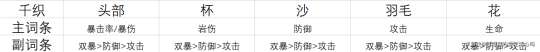 千织主堆双暴和防御,越高越好,攻击的加成并没有防御力来得高,但也可以适当堆一点,或者用班尼特之类的辅助来增加自己的双爆和防御攻击力。