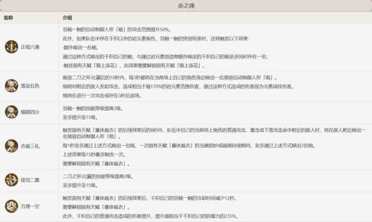 一命可以提高袖的攻击范围,并且释放完元素战技后还可以额外召唤一只袖;二命可以在释放完元素爆发后每三秒可以在身边额外召唤一只绢造成元素战技伤害;六命触发量体裁衣后可以减少元素战技冷却时间12s,并且依据自身防御力提高普攻伤害。