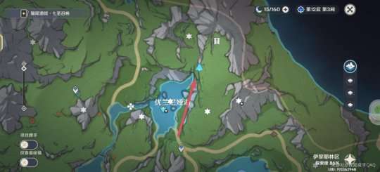 然后按下图标记方向前进(选择湖的边沿)