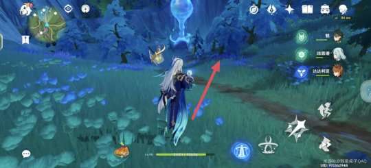到达湖中垂柳右下方传送锚点后,按标记方向前进