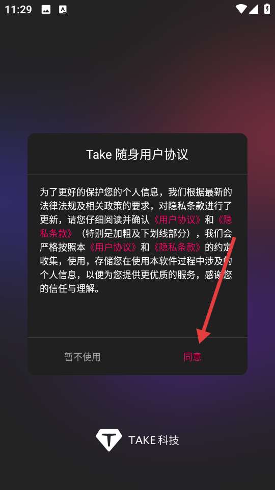 1、首次打开APP会弹出用户协议及隐私政策界面,需仔细阅读后点击同意才能继续使用APP,这一步是为了确保用户了解并同意平台使用个人信息的规则。
