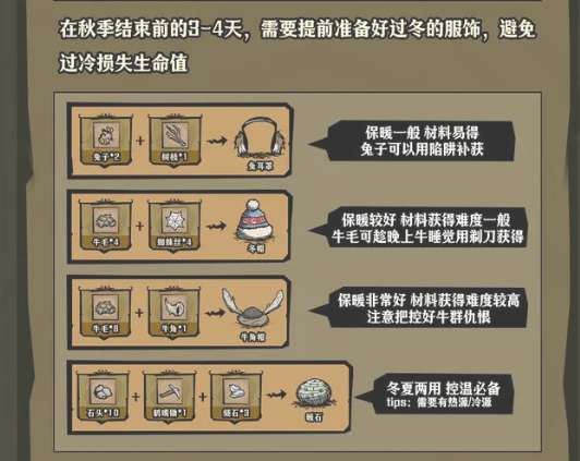 在秋季结束前的3-4天,需要提前准备好过冬的服饰,避免过冷损失生命值