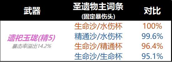 ◆◆◆关于武器【遗祀玉珑】:圣遗物使用[黑曜秘典4件套]时,使用该武器时暴击率必定溢出,所有圣遗物的副词条要尽量避开暴击率,更倾向于暴击伤害、生命%、精通。