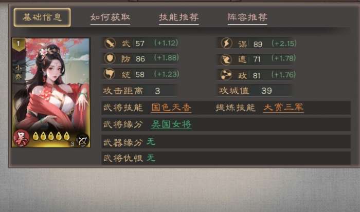 软件提交 专题合集 热门手游三国乱世霸王小乔技能怎么样,她的自带技能“国色天香”能为我军群体提供稳定的持续回血,搭配输出核心时可大幅提升队伍续航能力,同时适配“吴国女将”缘分体系。