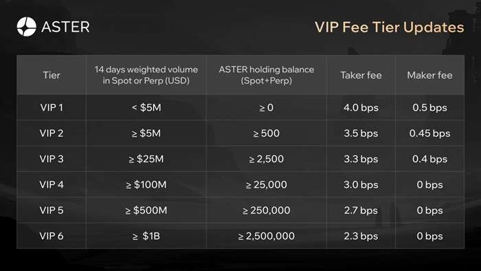 ASTER 交易费率、VIP 要求及质押等级