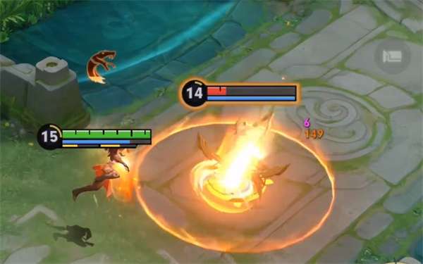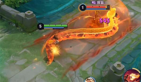 向前释放火蛇对敌人造成魔法伤害并造成致盲效果,持续2秒