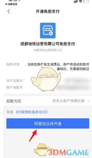 3、之后,在开通免密支付界面,点击下方的同意协议并开通。