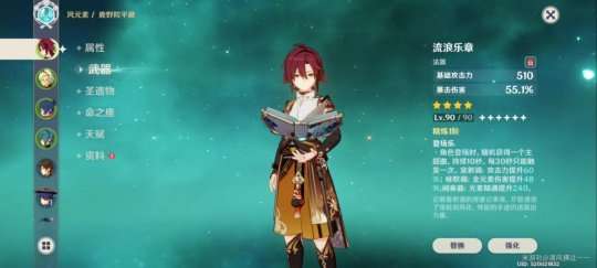武器推荐神乐之真意(就是被动叠起来很麻烦),四风原典,天空之卷,尘世之锁,流浪乐章。