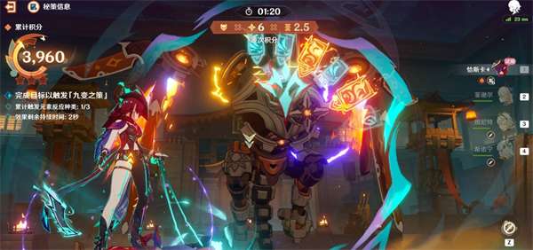 在挑战过程中,多次切换角色并触发不同的元素反应来激活增益效果。触发增益后,屏幕下方会显示增益倒计时,玩家需确保增益效果的持续覆盖,以提高战斗效率。