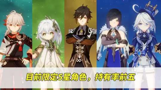 目前按照持有率从高到低排序,限定五星情况如下:枫原万叶、纳西妲、钟离、夜兰、芙宁娜。由于首次UP的加持,其中一位新角色成功冲入前五,这一点有点超出预期,说明该角色在活跃玩家心目中有着极高的珍贵程度。