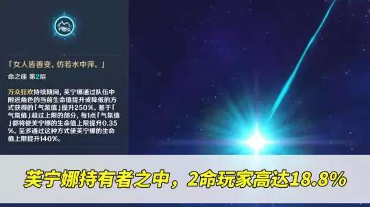 在游戏中,0命芙宁娜只占了58.4%的比例,而2命玩家高达18.8%,其次是1命玩家占了11.6%以及满命玩家占了7.7%。从冻梨水群的观察来看,许多玩家直接用原石购买数版本,甚至在完成魔神任务和传说任务后就将其抽满了。