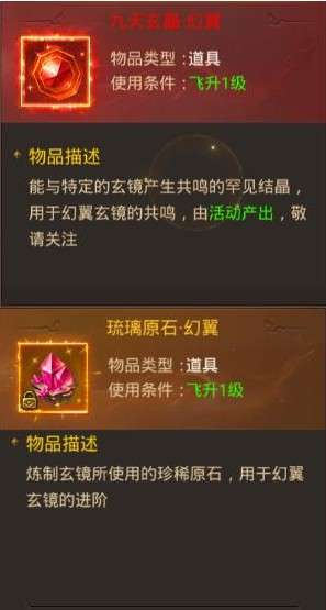当玄镜等级和幻翼等级同时达到一定阶数后可以消耗九天玄晶·幻翼进行玄镜共鸣,产生共鸣后会百分比提升玄镜和幻翼的基础属性;