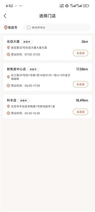 2、尝试选择门店,从附件的地点来取餐。