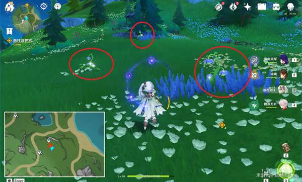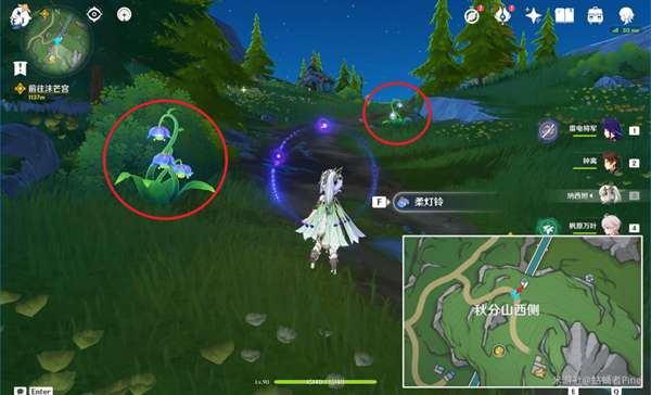 4,最后枫丹的秋分山西侧和厄里那斯南部的两处地方有比较富集的柔灯铃点位,可以去拍摄