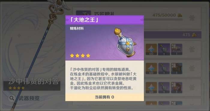 3、当营业收入达到100000、200000、500000和1000000就可以就可以获得用来精炼这把武器的材料了。