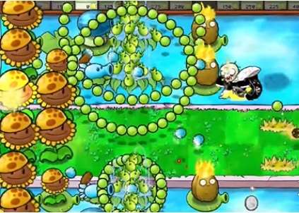 4、分别在草坪上下两侧都种一个多重豌豆荚,配合寒冰香蒲射手击败敌人。