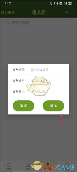 3、输入好友的手机号和姓名,填好后点击下方“添加”按钮。