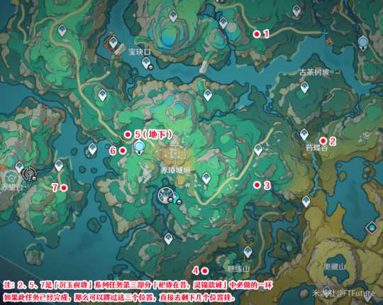 注:七个点位中,序号2、5、7这三处氲气均为世界任务「沉玉祝珑」第三部分「祀珑在昔,灵锦歆诚」中必做的环节,如果此任务已经全部完成,那么可以跳过这三处,直接去剩下几处。
