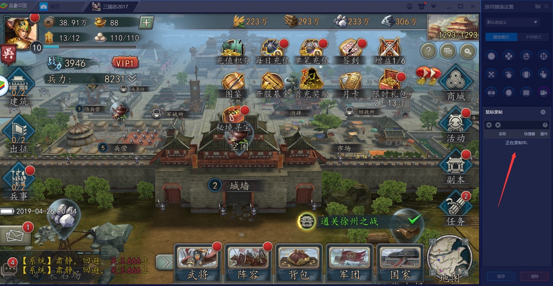 1、打开蓝叠模拟器,运行你要录屏的游戏,