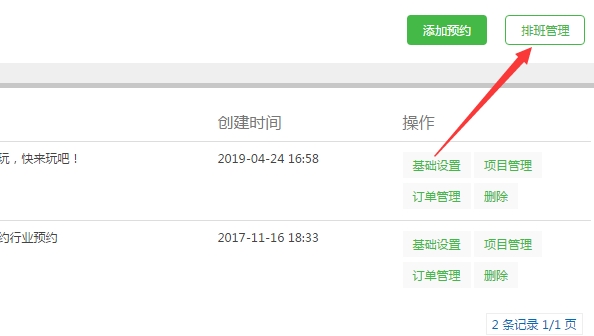 点击右上角“添加服务项目”,需要注意的是,如果您所添加的服务项目是需要用户提交支付定金的,那请先去配置好微信支付接口配置。当然在同一个行业预约活动里,是允许添加多个不同的项目,直接添加服务项目即可。