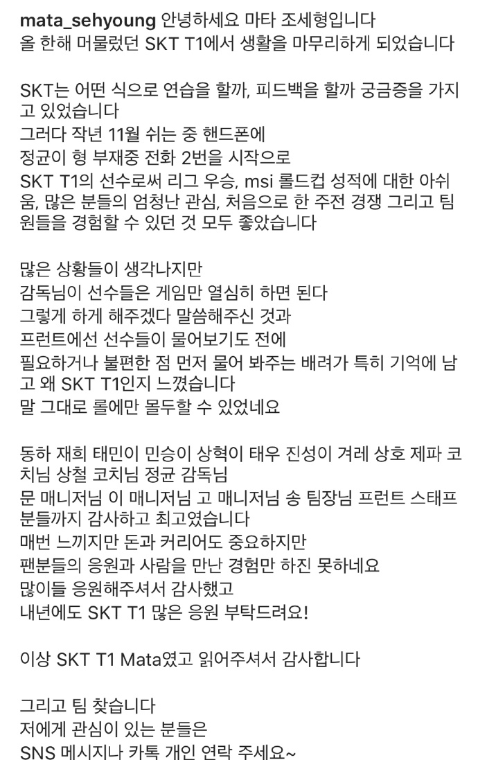 软件提交 专题合集 热门手游2019 LOL冬季转会期,传奇辅助Mata正式从SKT离队,SKT三大将均不续约。11月19日,Mata发长文回顾在SKT的职业生涯,并“在线求职”,表示自己目前正在寻找队伍中。
