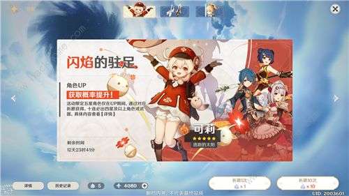 首先可莉作为五星角色,只能通过【卡池抽取】获得,对应UP卡池名字叫【闪焰的驻足】。其他卡池也不是不能抽到,就是抽中的概率太低了,所以大家都是等可莉池子开了才抽。(PS:虽然概率依旧低得可怜)