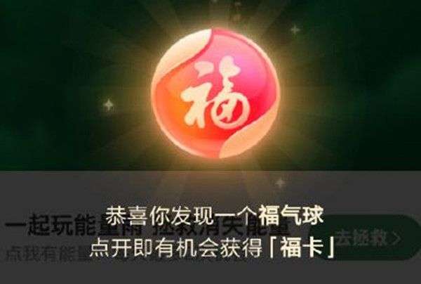 在寻找能量的同时,可以点击福气球,就有机会获得福卡,还可以顺便收取蚂蚁森林的能量。
