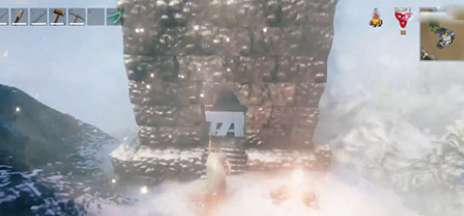由于游戏的地形是随机生成的,所以没有这个固定位置,但是这个第四个BOSS线索一般都是在雪山附近,玩家可以在雪山附近找到一个破旧的石头房子,如图所示,然后直接进入。