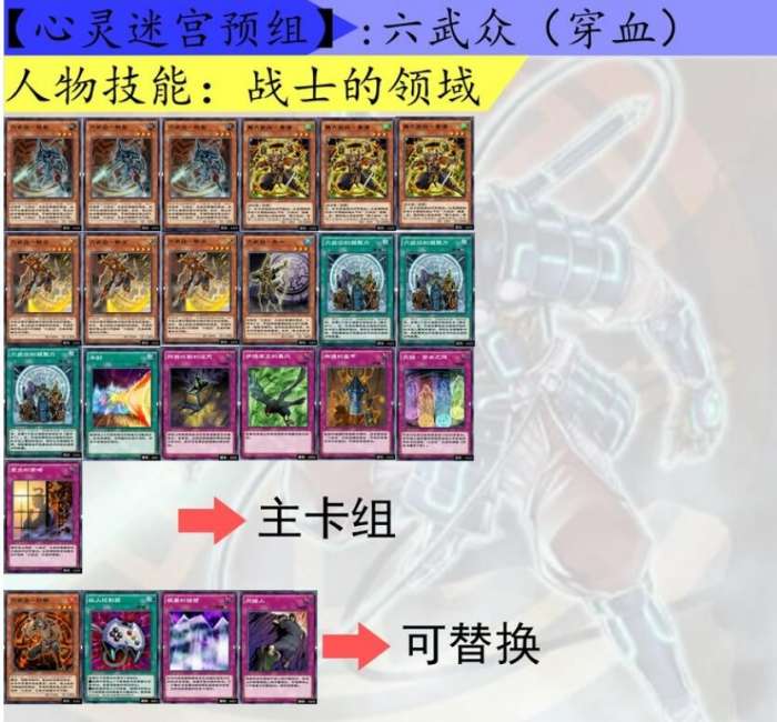 【六武众(召唤)】:比起上面那套这套更加吃怪兽效果,以六武众的先导为核心,再配合六武众之理和六武众的凝聚力,能够再一回合快速过牌和连续发动怪兽效果,唯一的缺点可能是怪兽的攻防太差,卡来的不好容易扑街。可以带一张六武众的场地卡来弥补一下。