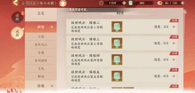 剧情成就主要分为普通剧情通关、困难剧情通关、奇遇剧情通关和关卡要求达成。使君只需按部就班完成剧情基本都可以完成剧情成就。