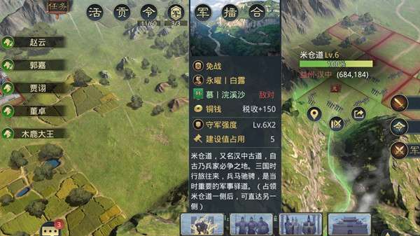 米仓道,又名汉中古道,自古乃兵家必争之地。三国时行旅往来,兵马驰骋,是当时重要的军事驿道。(占领米仓道一侧后,可直达另一侧)