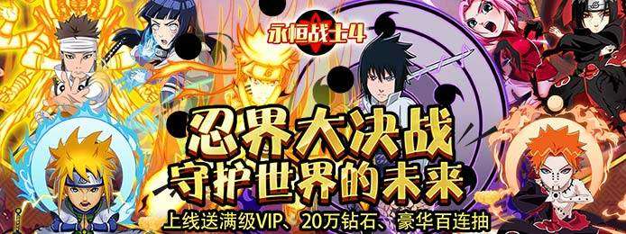经典火影再现,究极大战重燃!上线就送海量钻石、百连抽卡,豪华开局福利,尽享极品特权!还有1钻石成长基金,你敢买我敢送,累计返还90000钻!更有免费忍者商场,每日都能领充值,最高累计4000充,让你领到爽!海量超爽福利,助你热血一战!忍界究竟将何去何从,世界命运由你掌握!